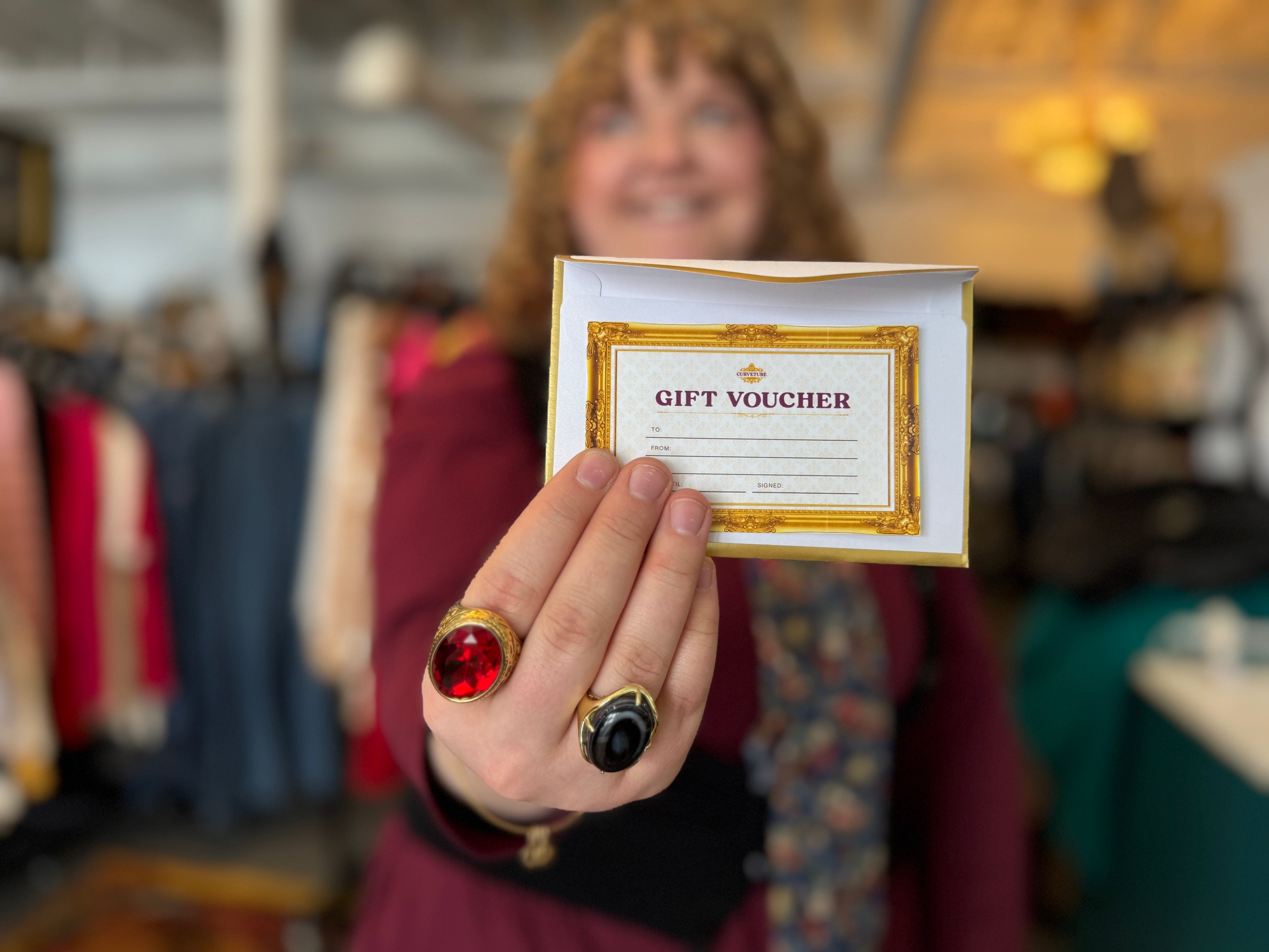 A Curveture gift card is the perfect choice. Let them explore our curated collection of plus-size fashion, thrifted treasures, and new arrivals — all selected to help every body look and feel amazing.